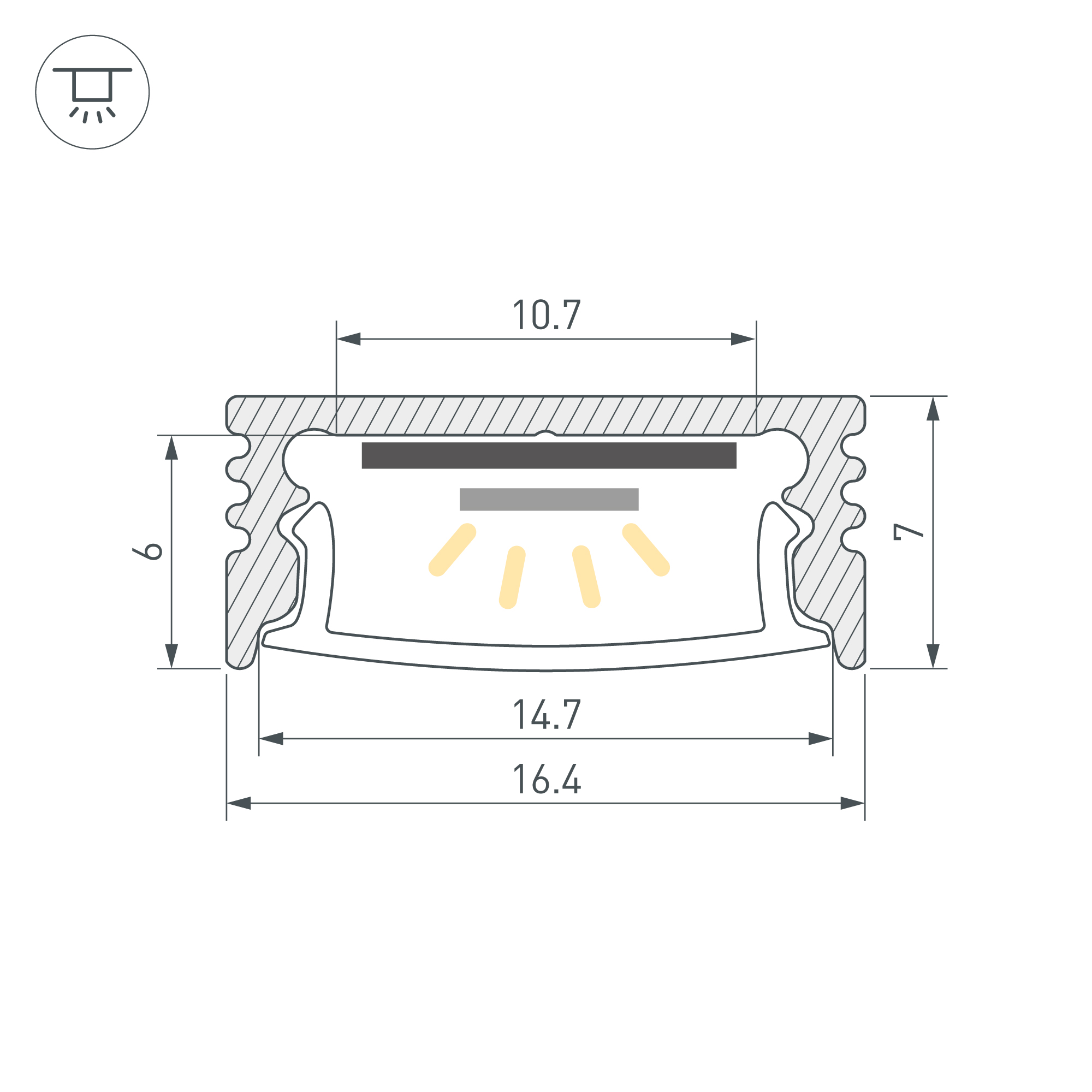 Алюминиевый анодированный профиль для светодиодных лент и линеек. Габаритные размеры (L×W×H): 2000x16x7 мм. Ширина площадки для ленты 10,7 мм. Экраны, заглушки и другие аксессуары приобретаются отдельно. Цена за 1 метр.