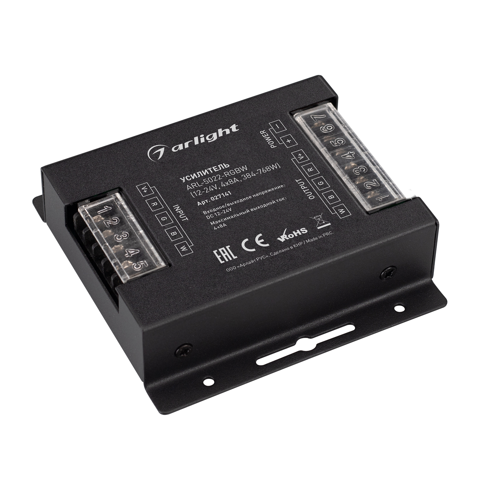 Усилитель ARL-5022-RGBW (12-24V, 4x8A, 384-768W) (Arlight, IP20 Металл, 3 года)