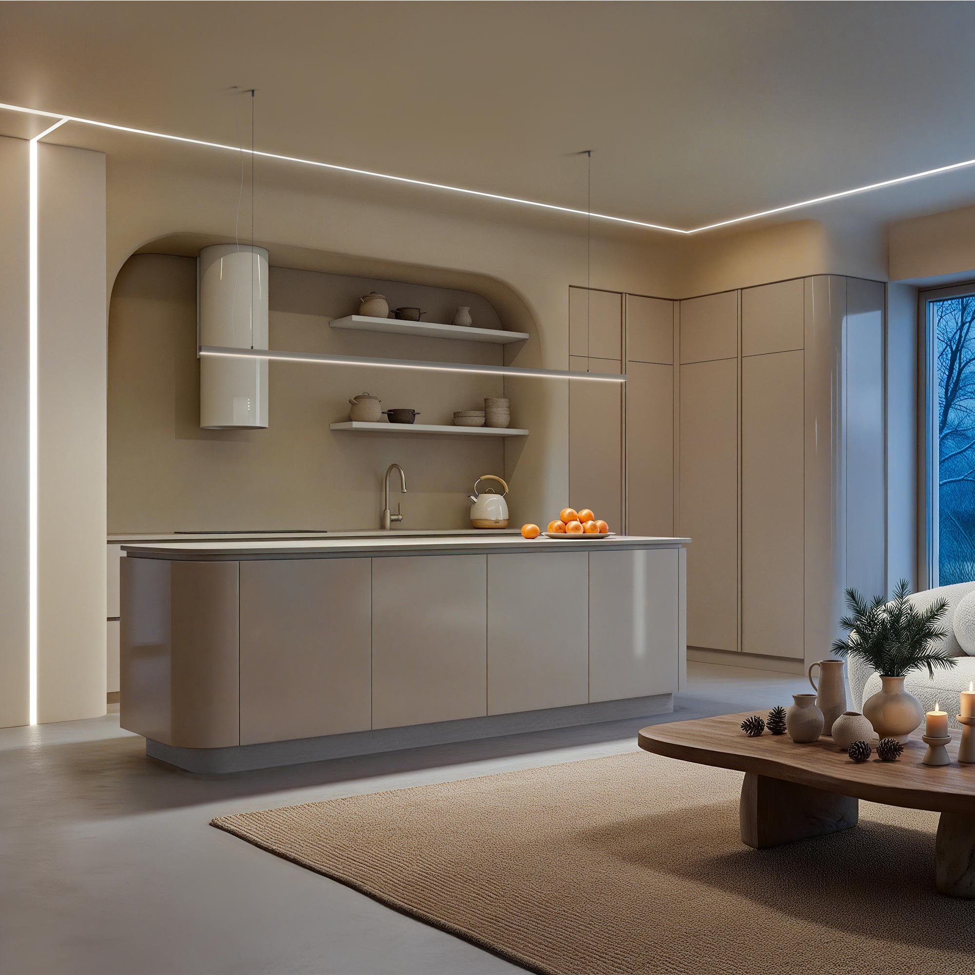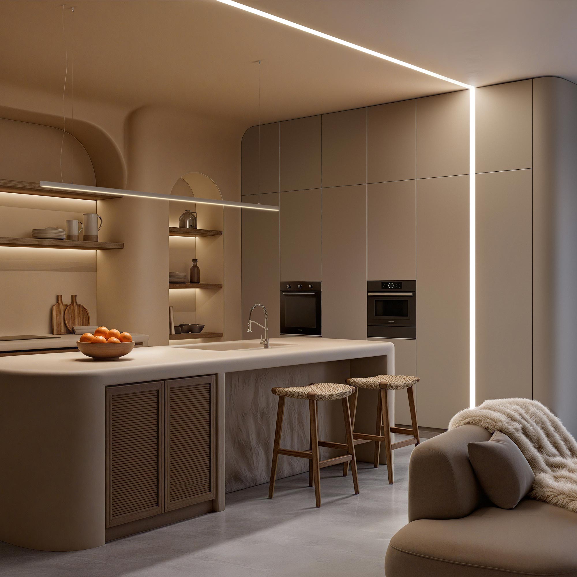 Подвесной/накладной профиль из анодированного алюминия для основного освещения и контурной подсветки.