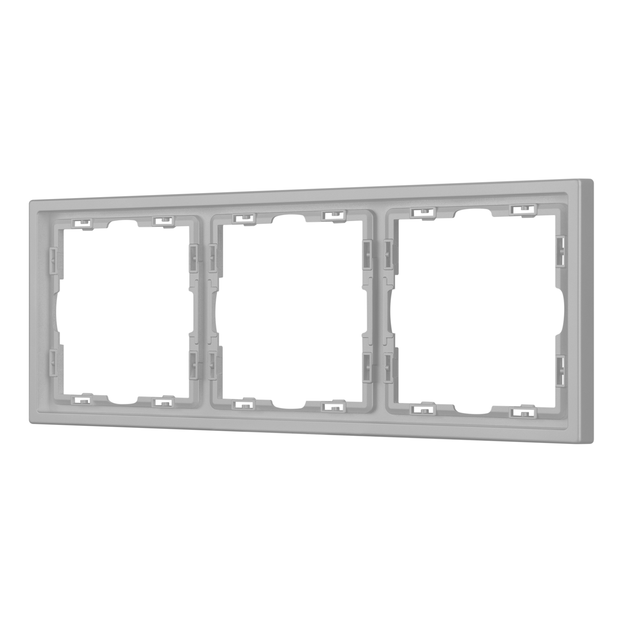 Рамка пластиковая на 3 поста, под встраиваемый механизм. Цвет - никель, с Soft-Touch поверхностью. Среднего уровня герметичности IP20. Ориентация монтажа горизонтальная. Габаритные размеры: длина 223 мм, ширина 81 мм, высота 8,55 мм. Гарантийный срок 12 мес.
