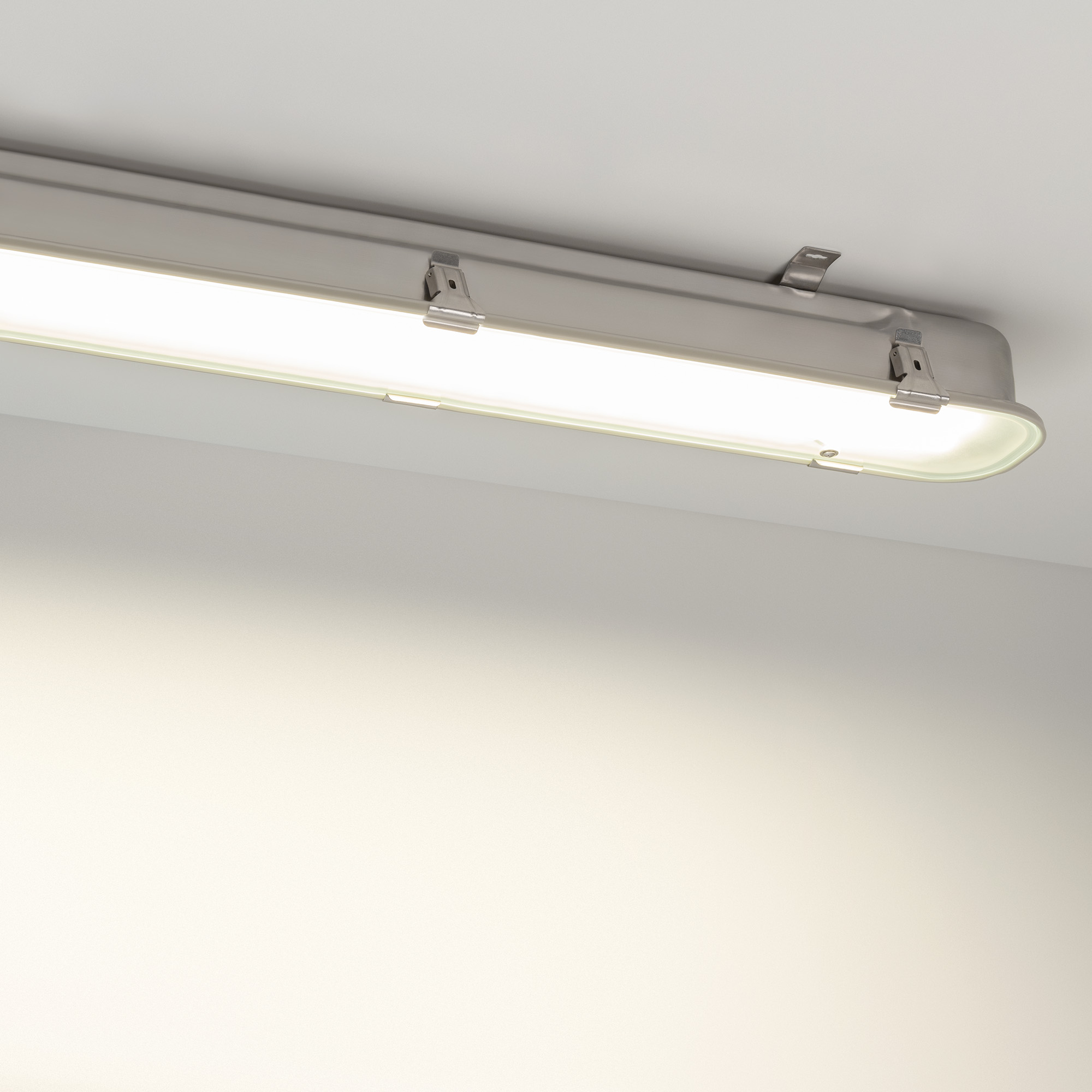 Влагозащищенный линейный светильник SP-KATANO мощностью 60 Вт, дневного цвета свечения 4000K, световым потоком 6300 лм и углом рассеивания 100° градусов предназначен для освещения в технических и в пожароопасных помещениях. Прямоугольный корпус выполнен из нержавеющей стали AISI 304, габариты 1608x139x104 мм, степень пылевлагозащиты IP65. Индекс цветопередачи CRI 80. Материал рассеивателя: закаленное стекло. Возможность накладного и подвесного монтажа позволяет легко адаптировать светильники под любые требования помещения. Для подвесного монтажа необходимо использовать подвесы 060754.