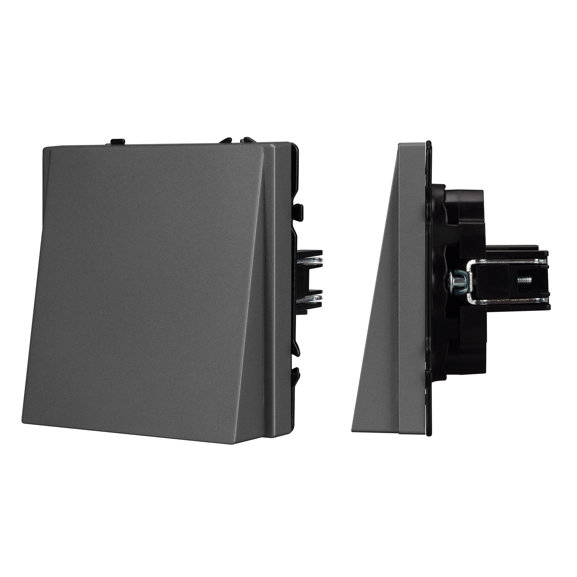 Суппорт окрашен в черный матовый цвет под основу механизма и выполнен из металла толщиной 1,5мм, что обеспечивает безопасность и уверенность в установке. На каждой стороне суппорта размещены фиксирующие элементы, позволяющие комбинировать механизмы в системы до 5шт как горизонтально, так и вертикально.