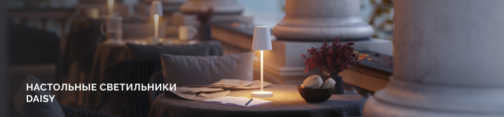 Где бы вы ни задумали создать атмосферу — за рабочим столом, в кафе или на открытой веранде — переносной светильник DAISY не просто лампа, а надежный друг, создающий комфорт в любых условиях.