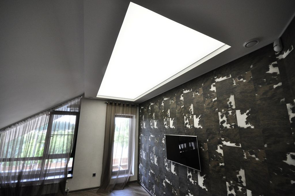 В проекте реализована два варианта освещения. Первый вариант равномерная подсветка натяжного потолка светодиодной лентой